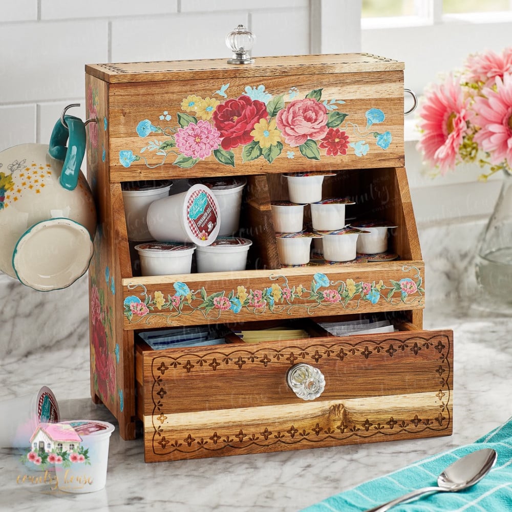 صندوق خشبي مميز لتنظيم أكياس الشاي والقهوة - المنزل الريفي الهادئ