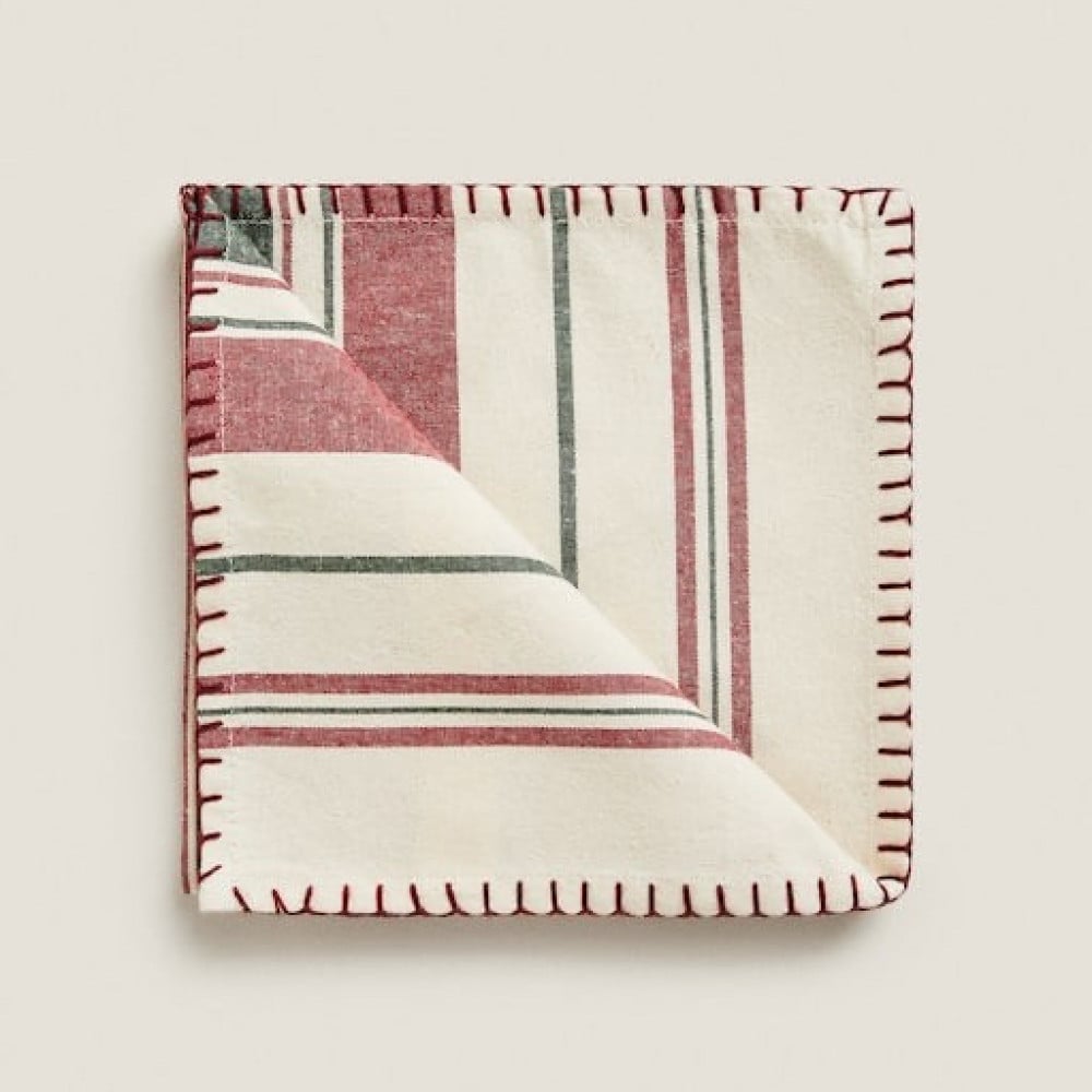 مفرش مخطط بحواف مطرزة